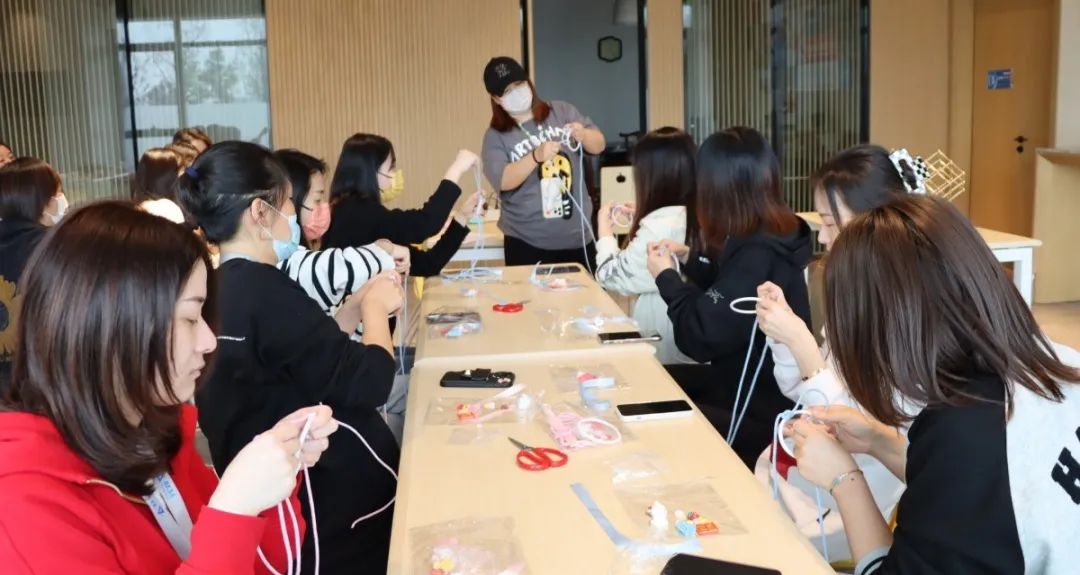 “看着自己的用心之作就很解压,我要把挂件挂在自己的车上”,“平时没给老公送过礼物,正想亲手制作一个礼物送给他,工会来教我们编织真是太及时了”……同事们在互相分享作品、交流心得的同时,也纷纷为工会组织的这次活动点赞。